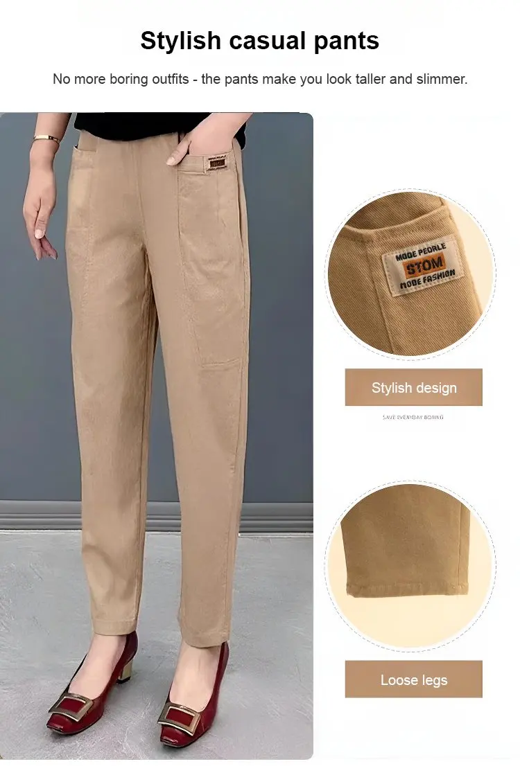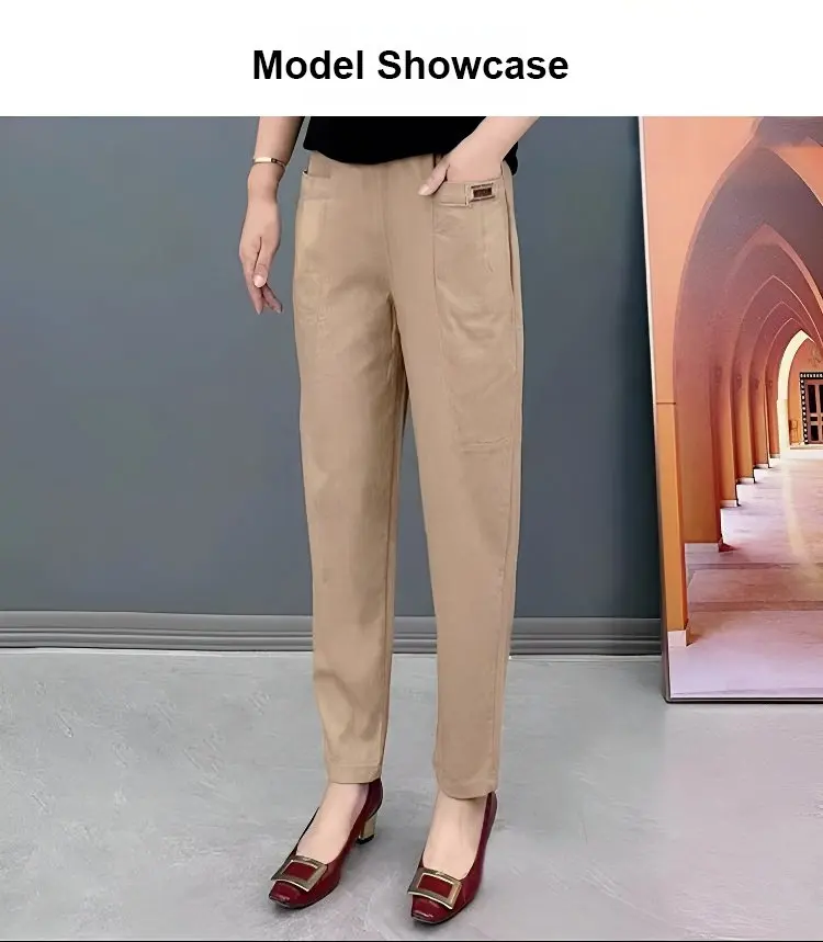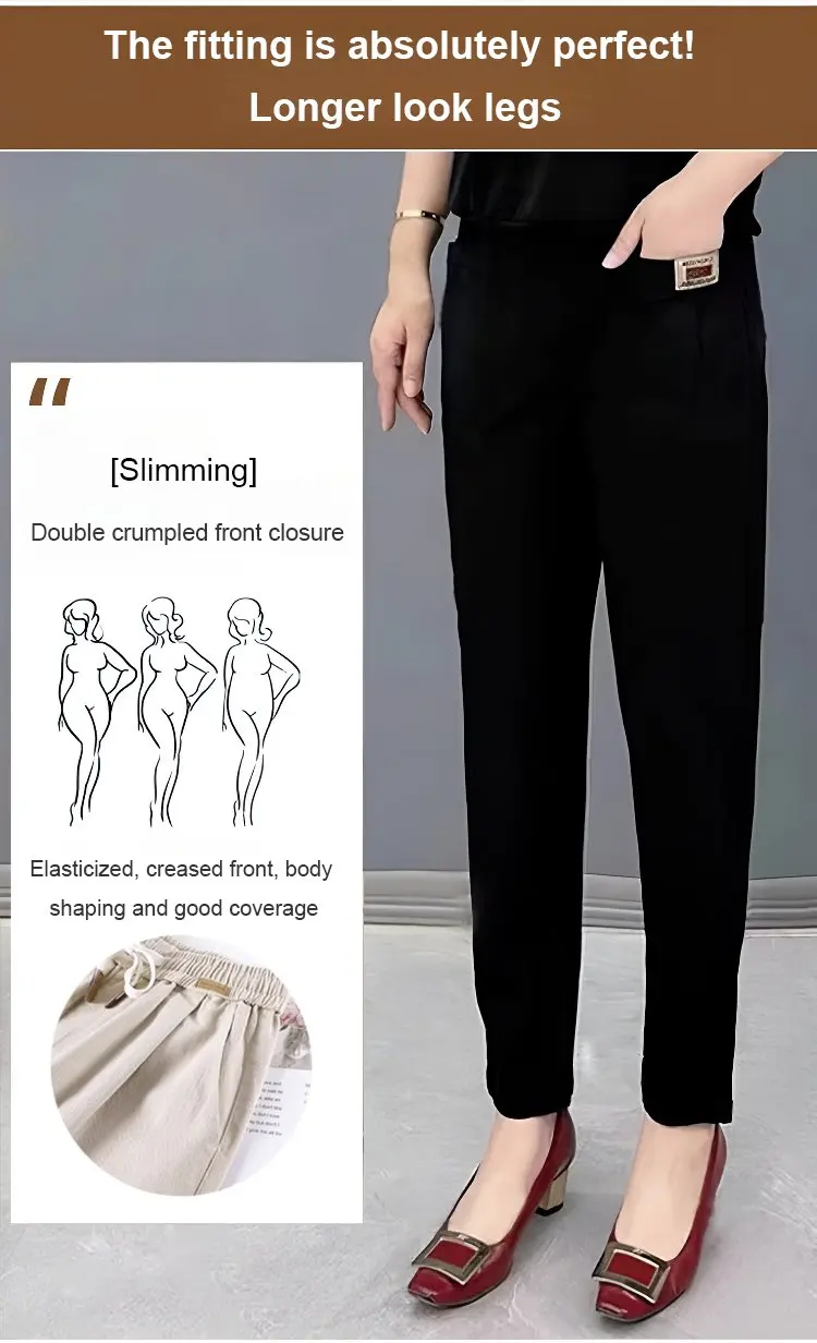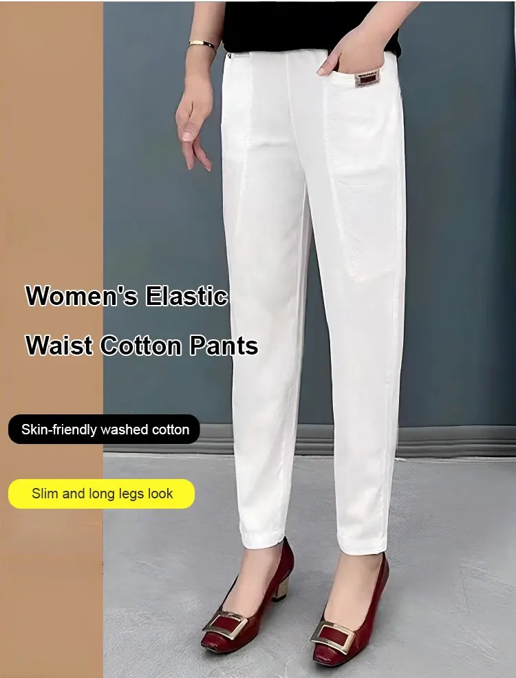 Women's Elastic Waist Cotton Pants Wrinkle Free Relaxed Fit Straight Leg Pant Casual Loose Fitting Pants